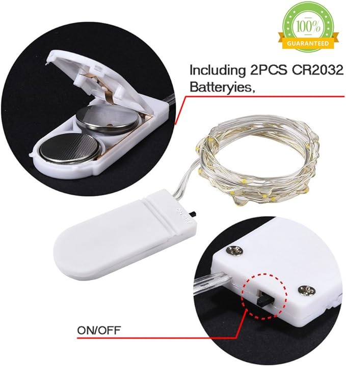 • Each fairy light is included CR2032 batteries, The battery box is with ON/OFF switch,simply switch on the lights and enjoy these amazing moon lights.The battery of these short fairy lights last for 48hours around continuous life, The batteries need to be replaced when the lights get dim.