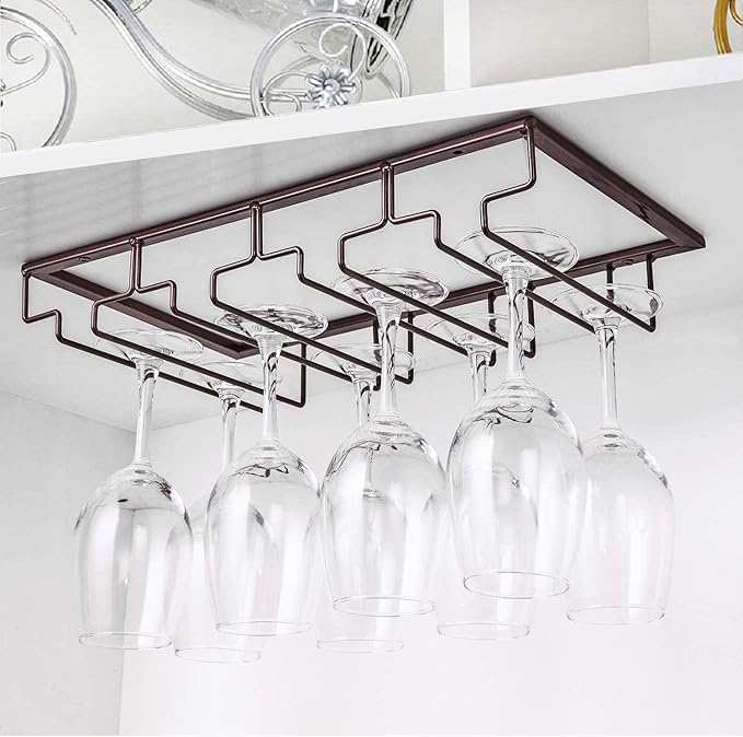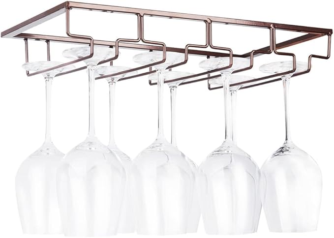 - ๐ทEASY TO INSTALL: Comes with the mounting hardware, no advance drilling advance required, just a few minutes to complete the installation. Organize your stemware collection, keep your wine glasses under the cabinet.