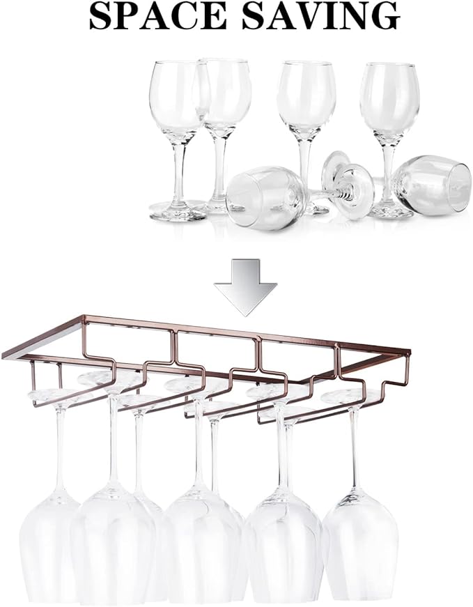 - ๐ทSPACE SAVING: Offer you a neat and modern style kitchen, cabinet or mini bar. Our wine glass rack use the space under your cabinet as storage of your wine glasses, which takes little space.