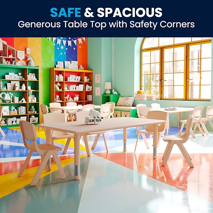 Flash Furniture Wren Adjustable Classroom Activity Table for School and Home, Plastic Activity Table for Kids, 23.625" W x 47.25" L, Natural
