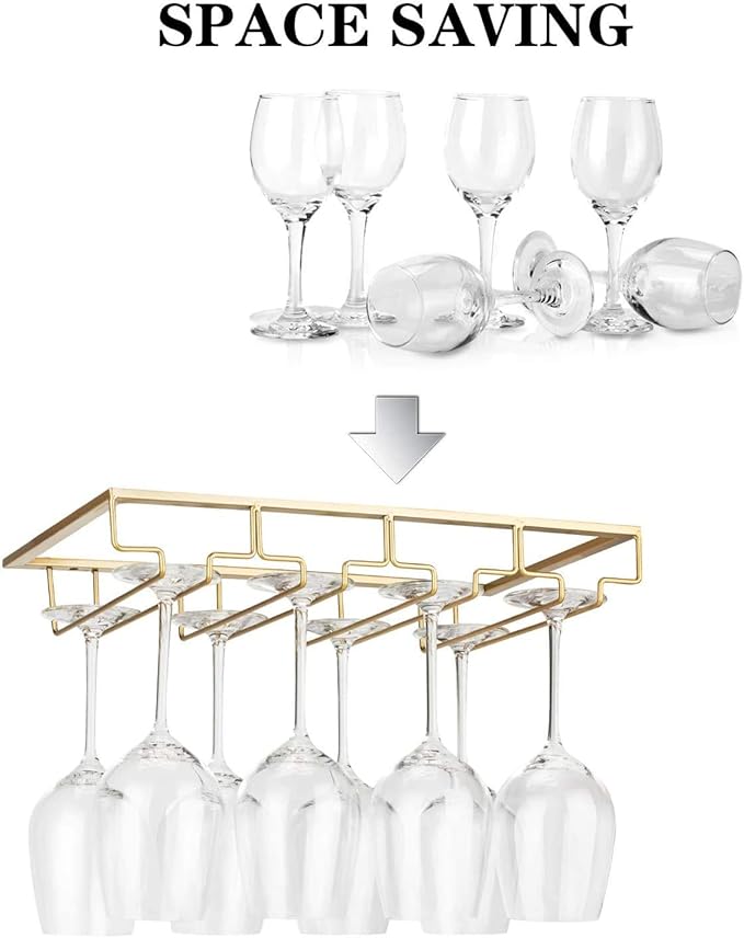- ๐ทSPACE SAVING: Offer you a neat and modern style kitchen, cabinet or mini bar. Our wine glass rack use the space under your cabinet as storage of your wine glasses, which takes little space.