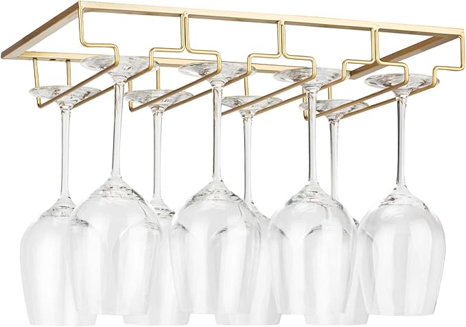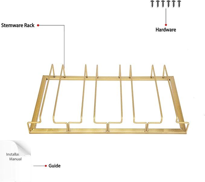 - ๐ทEASY TO INSTALL: Comes with the mounting hardware, no advance drilling advance required, just a few minutes to complete the installation. Organize your stemware collection, keep your wine glasses under the cabinet.