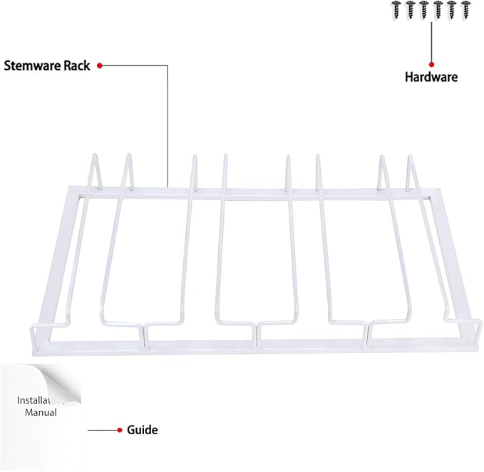 - ๐ทEASY TO INSTALL: Comes with the mounting hardware, no advance drilling advance required, just a few minutes to complete the installation. Organize your stemware collection, keep your wine glasses under the cabinet.