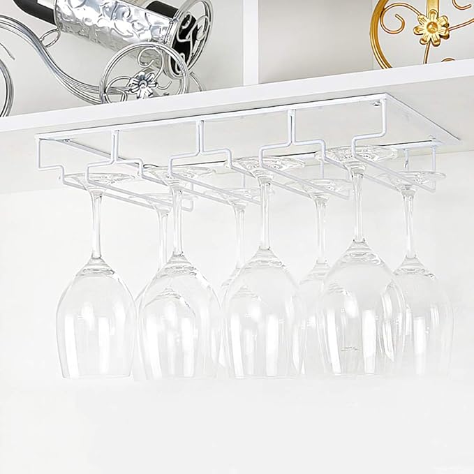 - ๐ทSPACE SAVING: Offer you a neat and modern style kitchen, cabinet or mini bar. Our wine glass rack use the space under your cabinet as storage of your wine glasses, which takes little space.