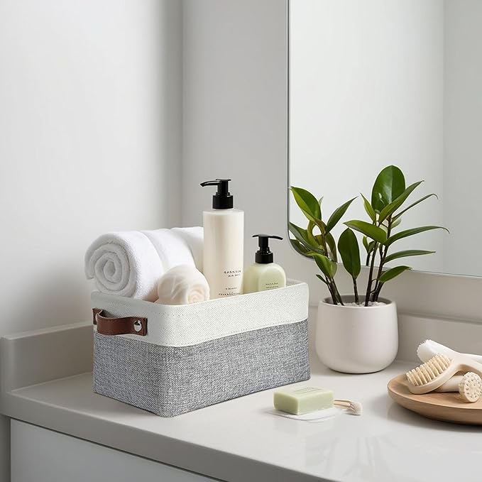 DECOMOMO Small Storage Basket, Closet Storage Bins, Baskets for Organizing Shelves (Grey & White, Small - 6 Pack)
