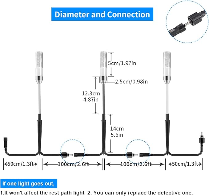 - End-to-End Extendable: End-to-End Extendable landscape path lights, you can connect max 7 sets of extension lights together (3 lights as a set) Note: Please connect the DC plug to the last light.