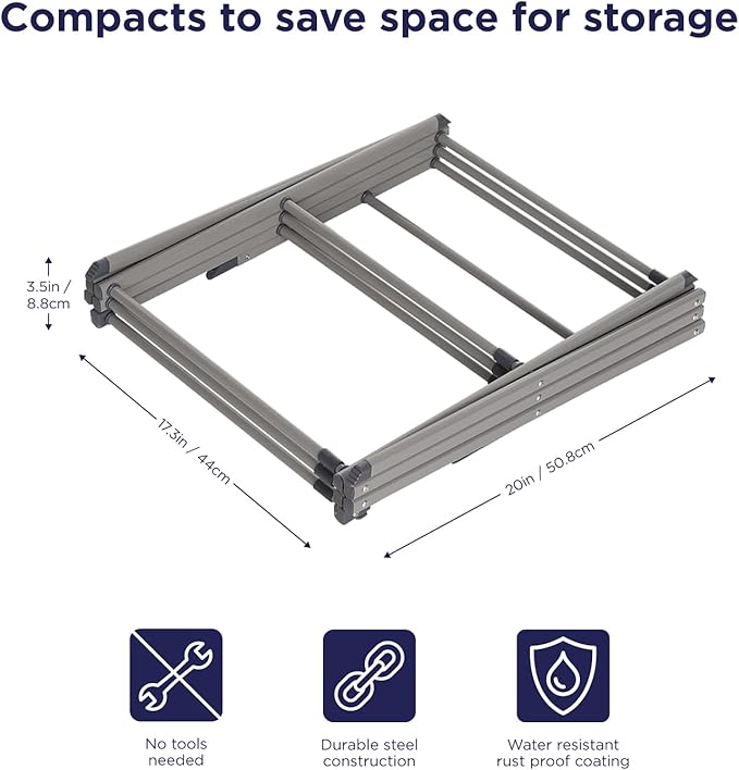 - FOLDABLE DRYING RACK: Collapsible drying rack for air-drying clothes and saving electricity consumption. The drying rack keeps items hanging neatly together and placed.