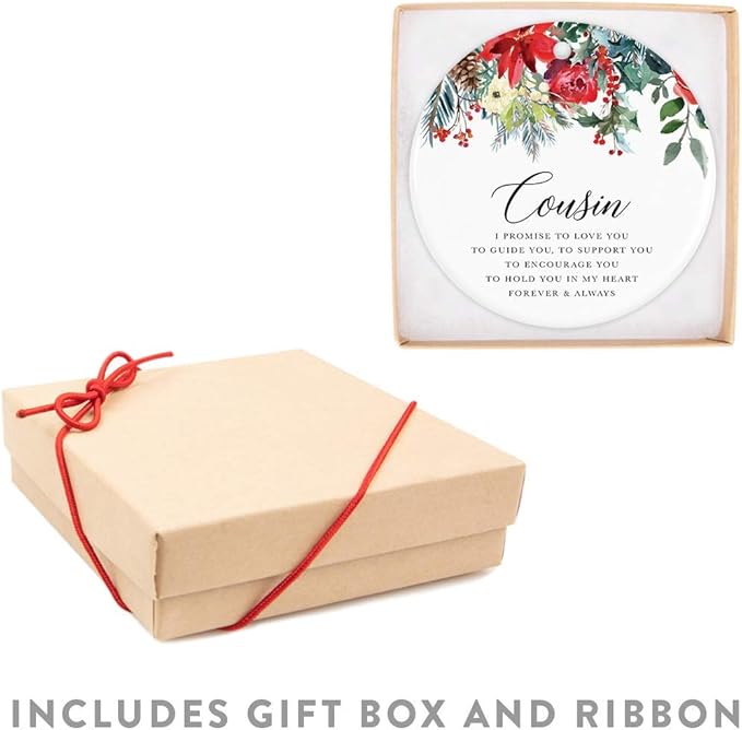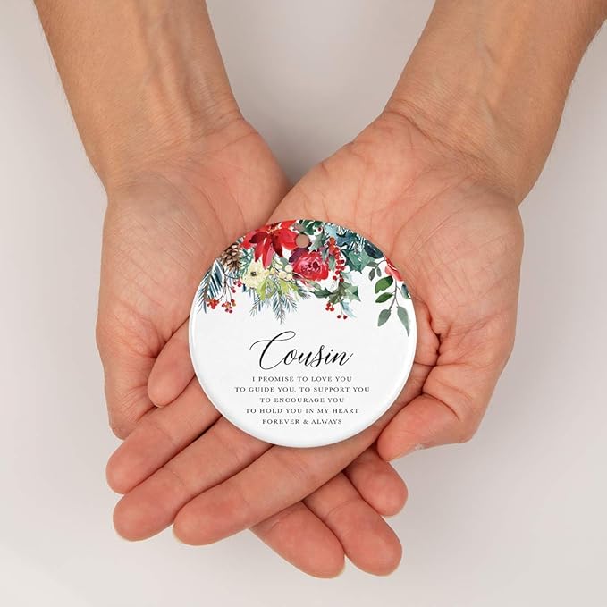Andaz Press Round Ceramic Porcelain Christmas Tree Ornament Keepsake Gift for Cousins, Cousin I Promise to Love You, to Guide You, to Support You, 1-Pack