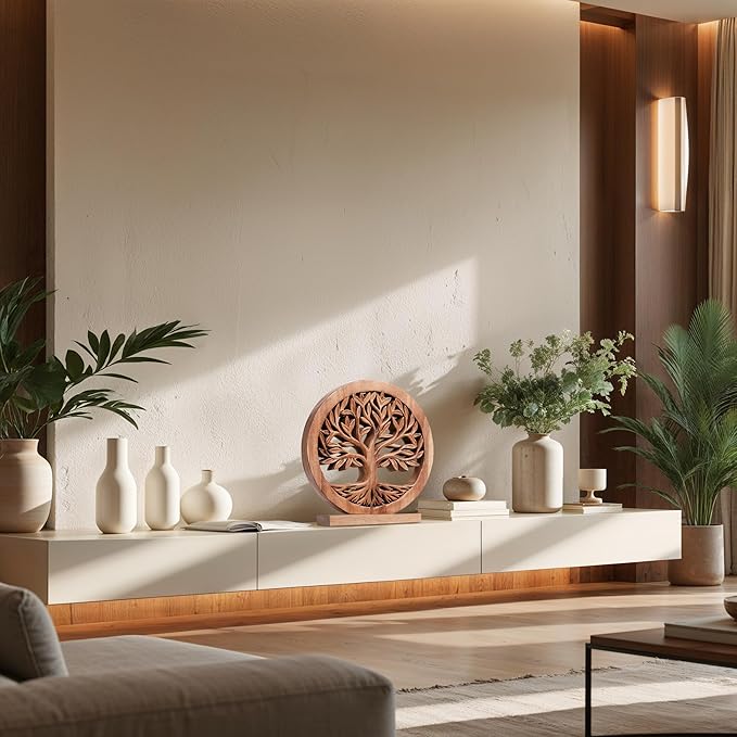 Decozen Solid Wood Tree of Life Sculpture - Home Decor, Living Room, Boho, Shelf, Coffee Table, Centerpiece Table Decorations, Mantle, Dining Table Centerpiece, Bathroom Shelf, Entryway, Farmhouse