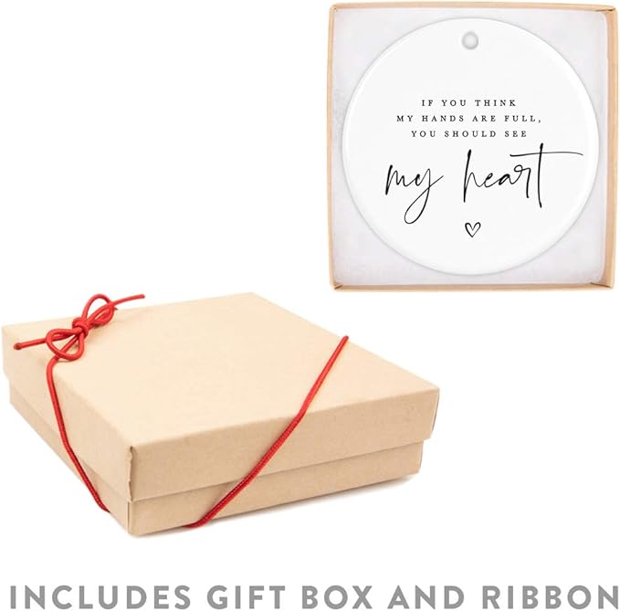 Andaz Press Round Ceramic Porcelain Christmas Tree Ornament for Teacher Thank You Graduation Gift, If You Think My Hands are Full, You Should See My Heart, Heart Graphic, 1-Pack Special Needs Autism