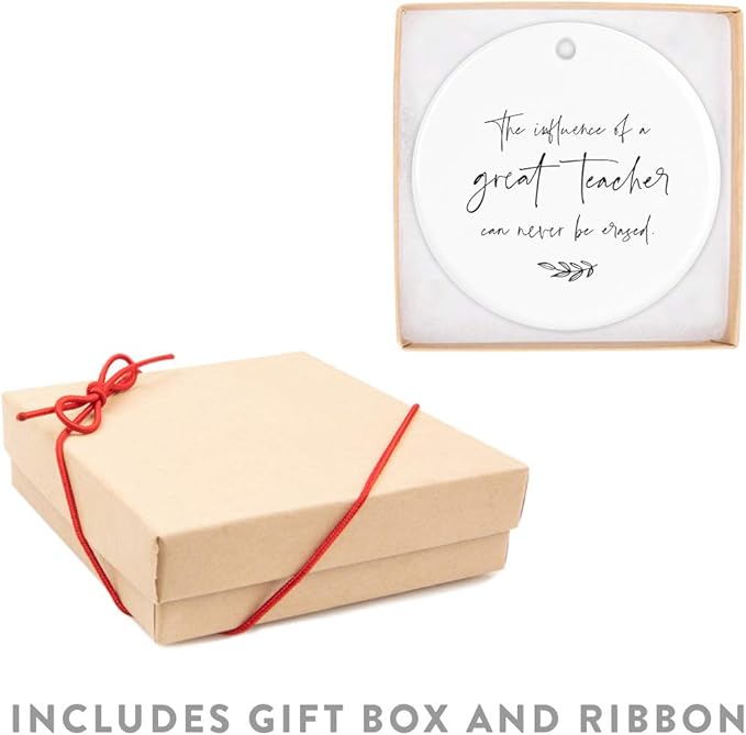Andaz Press Round Ceramic Porcelain Christmas Tree Ornament for Teacher Thank You Appreciation Graduation Gift, The Influence of a Great Teacher Can Never Be Erased, 1-Pack