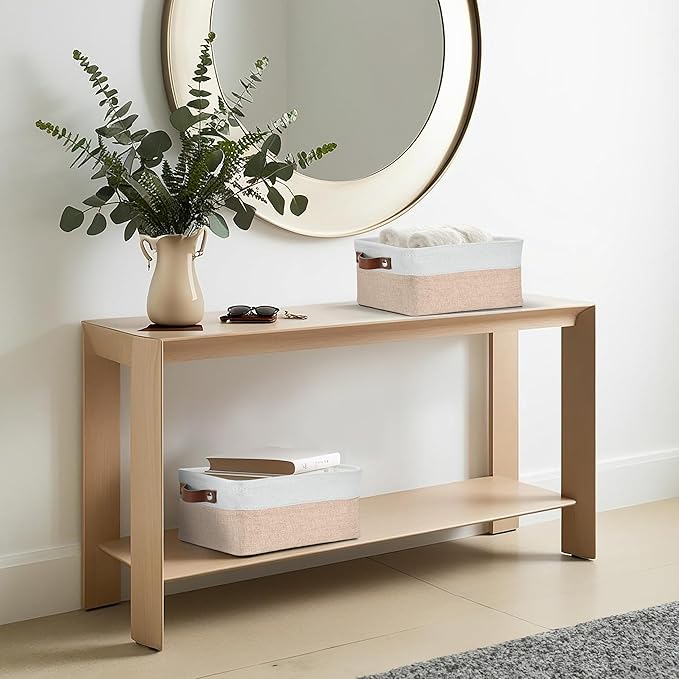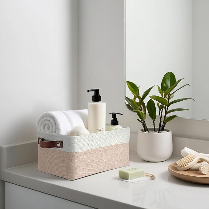 DECOMOMO Small Storage Basket, Closet Storage Bins, Baskets for Organizing Shelves (Beige & White, Small - 6 Pack)