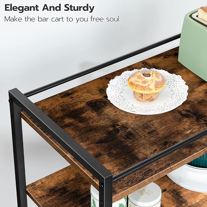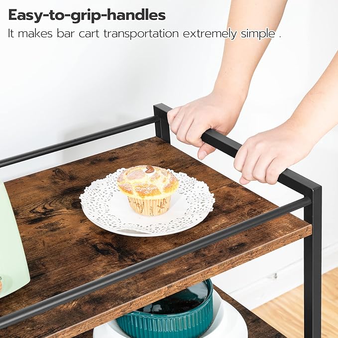 - Assembly is a Breeze: Thanks to the explanatory & easy-to-understand instructions and simple structure of the rolling bar cart, all you need is to follow the specific steps and swing the Allen key