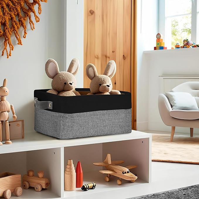 DECOMOMO Small Storage Basket, Closet Storage Bins, Baskets for Organizing Shelves (Grey & Black, Small - 6 Pack)