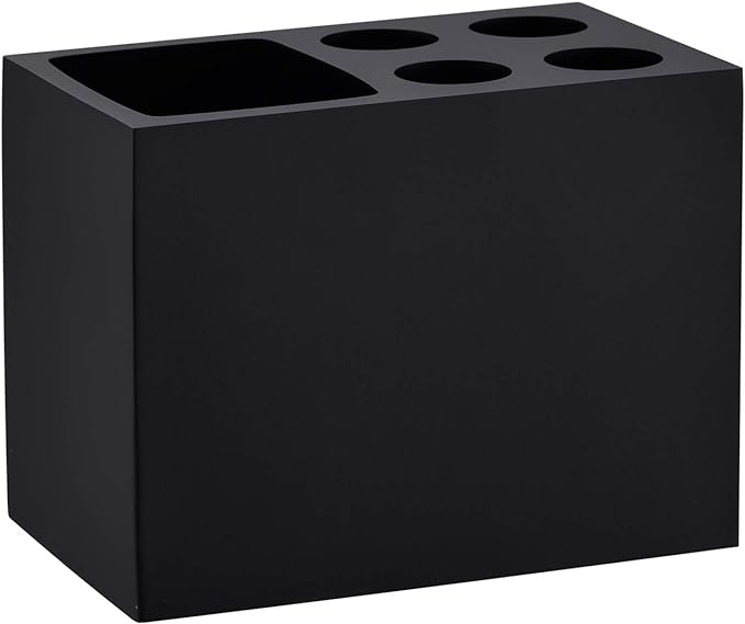 Resin Black Toothbrush Holder JINCROP, 5 Slots Toothbrush Holder Matte Black Bathroom Storage Stand Dispenser Organizer Set for Toothbrushes, Make-up Brushes and More, (Matte Black)