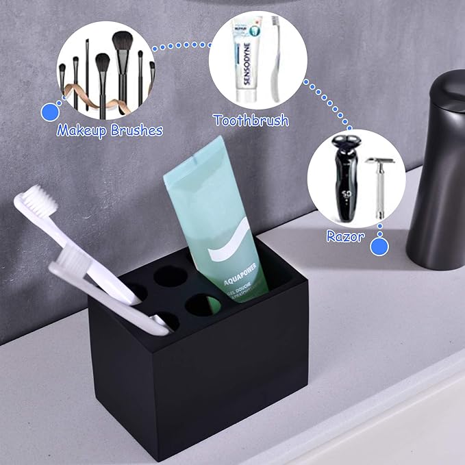- Resin black toothbrush holder: High-grade matte black toothbrush holder.