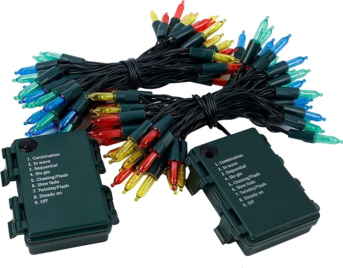 - BATTERY OPERATED WITH TIMER: 3 AA batteries are required for power supply (NOT INCLUDED). Press button on the battery case for 8 modes adjusting: COMBINATION, IN WAVES, SEQUENTIAL, SLOGS, CHASING/FLASH, SLOW FADE, TWINKLE/FLASH and STEADY ON. Just light up the light with any mode you like to create great festival holiday joy atmosphere