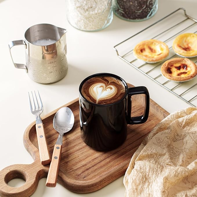 E-liu Porcelain Tea Mugs Coffee Mug Set, Large 15 Ounces Cups for Coffee, Tea, Cocoa, and Mulled Drinks, Set of 6, BlacK White Grey