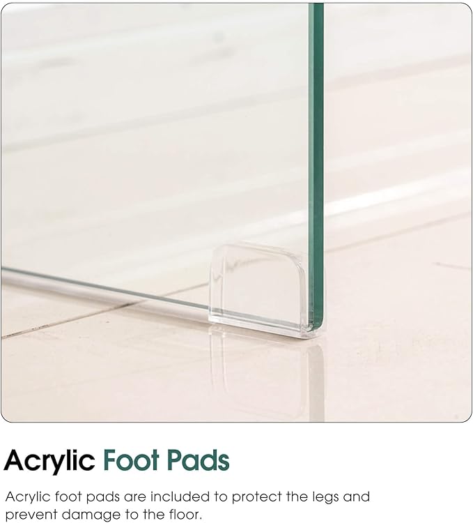 - Premium Shelf Brackets and Floor Protection Pads: Four premium brackets securely connect the glass tabletop to the base. Acrylic feet pads on the bottom protect your floors from scratches and scuffs, ensuring lasting durability
