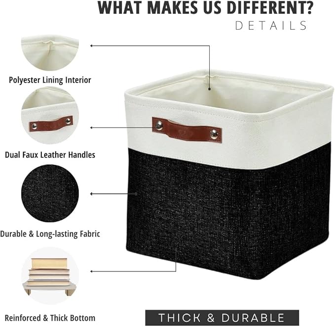 DECOMOMO Storage Cubes, 11x11 Cube Storage Bins, Baskets for Shelves (Black & White, Cube 11" - 4 Pack)