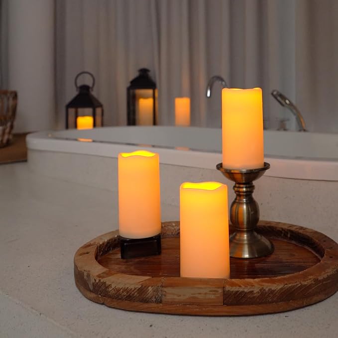 - Energy-Efficient & Long-Lasting: Built with energy-saving technology, these flameless pillar candles offer an impressive battery life of up to 500+ hours using just 2 AA batteries each(Batteries Not Included). You don’t need to buy additional expensive solar-powered LED lights