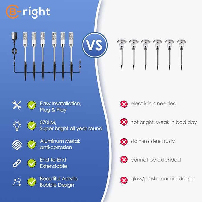 - 【Bright and Stable Walkway Lights】Electric outdoor walkway lights uses high quality 5050 LED beads, emits bright and stable 6000K cool white light. The body of the light is made of high-definition, high transmittance acrylic material, filled with tiny bubbles, creating a unique visual effect under the light, very suitable for gardens, yards, walkways, lawn, sidewalks halloween christmas landscape lighting decoration.