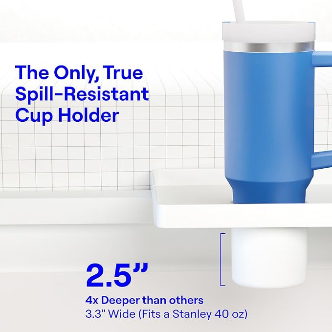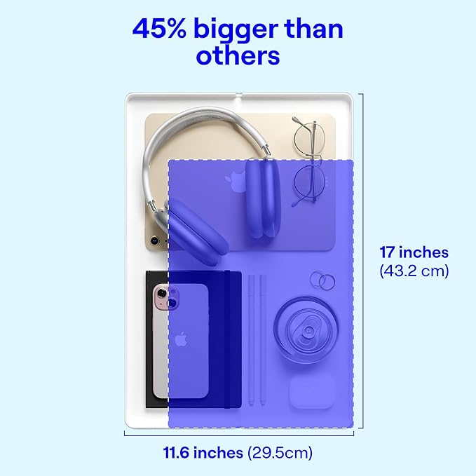- A COLLEGE DORM MUST HAVE: Our bedside shelf for bed features a deep, spill-resistant cup holder (2.5" tall x 3.3" wide) to store drinks, snacks and device charging cords. With a 17 x 11.6" size, this floating nightstand shelf provides ample room for a variety of items, such as a laptop, textbooks and more. The bed side table tray is made with an Eco-Hard Recyclable Plastic in a beautiful and modern matte finish - making it the perfect dorm room essential for small space living.