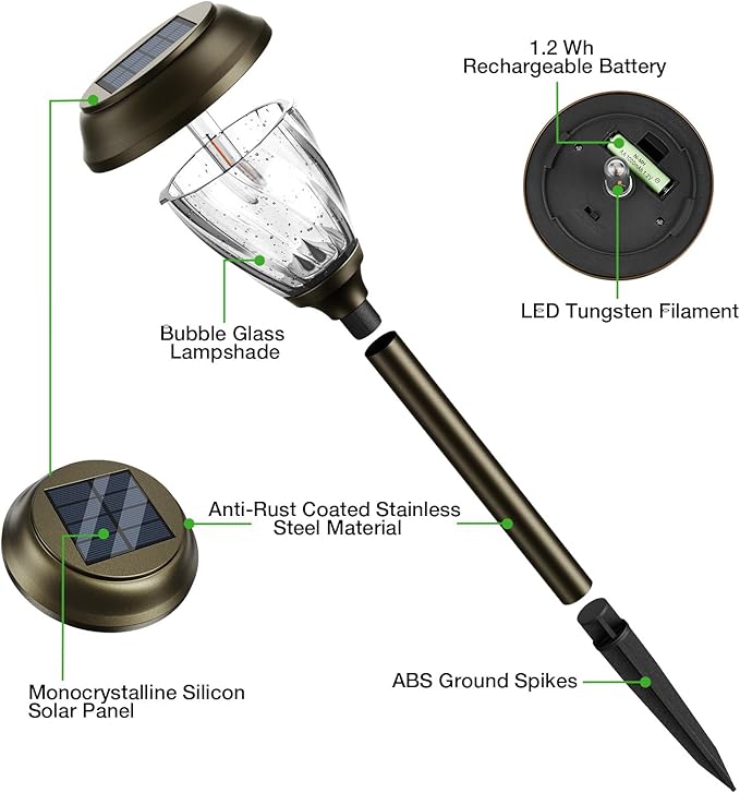 - Luxury Solar Lights Outdoor Garden Design - Bubble-textured glass (93% light transmittance) with nano-coating repels dirt - proven 96% easier cleaning vs plastic. Starry 360° light patterns via CAD-engineered paraboloid lens. These solar powered outdoor lights create magical ambiance without yellowing (99.6% UV stability after 5 years).