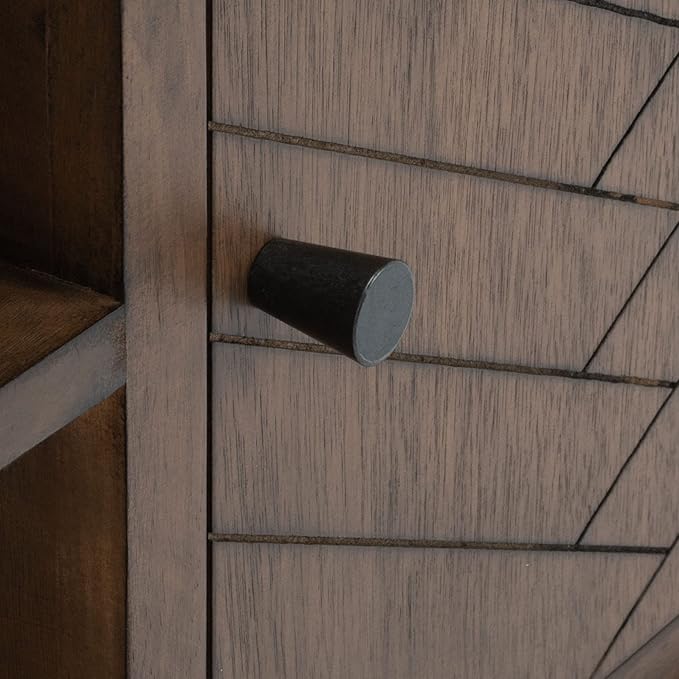 - Features an oversized herringbone pattern on its two doors with rich brown finish