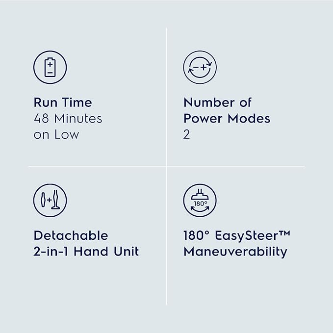 - Enhanced Mobility and Visibility: Effortlessly navigate around furniture and obstacles with 180° EasySteer maneuverability as bright LED nozzle lights illuminate tight, dark spaces for a more thorough clean