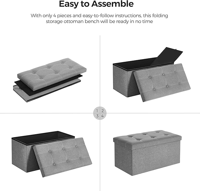 - 【QUICK ASSEMBLY, EASY FOLDAWAY】This storage ottoman from the SONGMICS MAZIE Collection has a foldable design that allows quick setup in seconds by simply inserting the bottom panel. Easily fold and store it under the bed or in a closet when not in use
