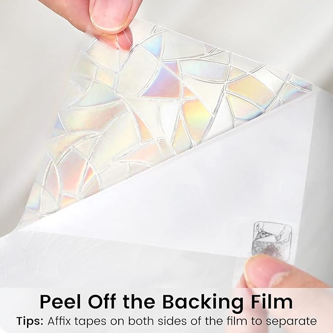- Rainbow Effect: Crafted by 3D laser process, this rainbow prism window film will catch the light and create a rainbow effect when the sun hits the decal. The decorative window cling itself does not actually have any color, and the rainbow effect depends on the angle and intensity of the sunlight. Also, it classes up the room and makes the window look like stained glass without the expense of a custom stained glass window