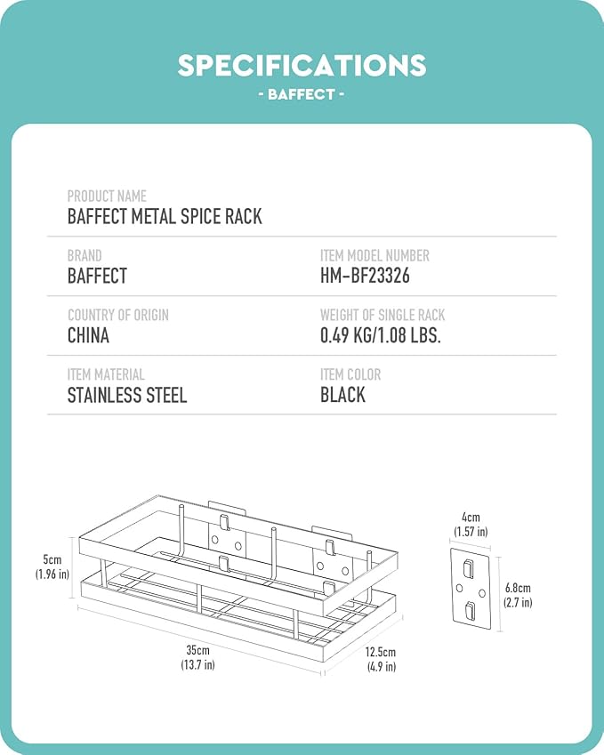 - [PRATICAL DESIGN] The spice rack can easily bear 11 pounds and this spice rack organizer is 5in wide, giving you a great allocation to hold spice hardware. The front edge is 2in high to keep your items from slipping or falling off and is easy to take down or put your spices.