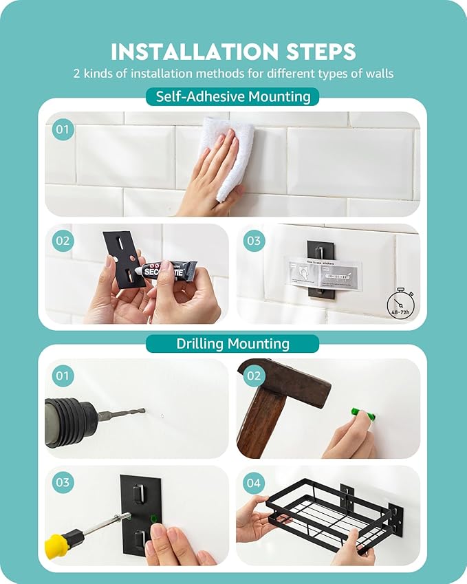 - [TWO WAYS TO INATALL] You can choose the SUPER STRONG ADHESIVE or SCREW to mount the support frame to the wall firstly and then put the floating shelf onto it. All the mounting screws and fixings are included. It is very easy to install.