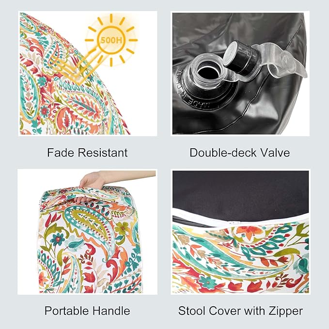 LVTXIII Inflatable Stool Ottoman Footrest with Handle, Decorative Fade-Resistant Foot Stool, Indoor or Outdoor Pouf for Home Patio Garden and Camping Use, D21 x W 21 x H9, Warm Paisley