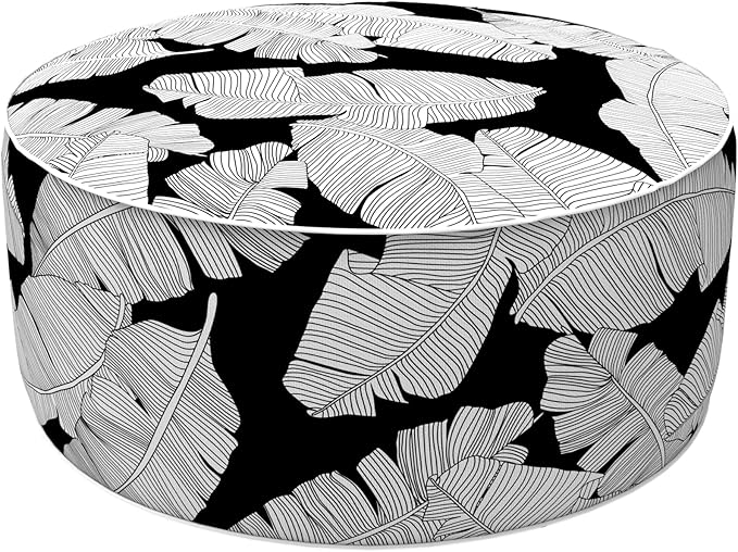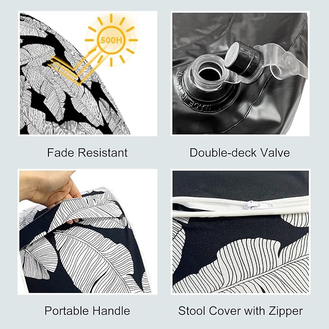 LVTXIII Inflatable Stool Ottoman Footrest with Handle, Indoor or Outdoor Foot Rest for Home Patio Garden and Camping, D21 x H9, Black Lush Leaf Jungle