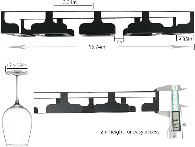 - ๐ทWine Glass Holder Undershelf - Holds 8-16 wine glasses, the base is suitable for wine glasses from 1.4" to 3.14", It can help organize your stemware in the corners of your cabinets.