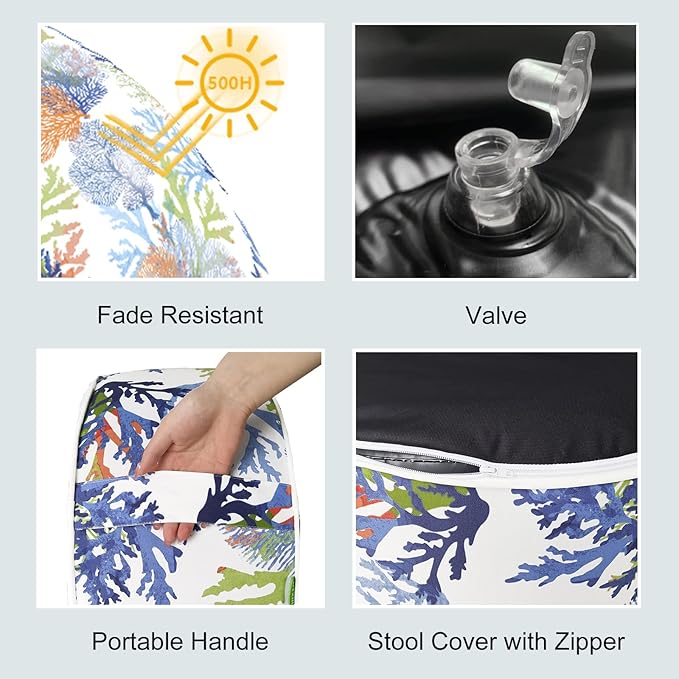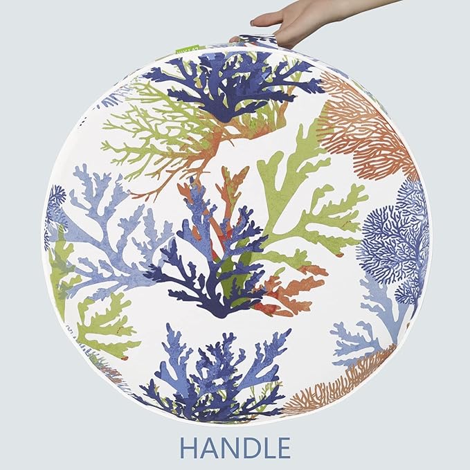 LVTXIII Outdoor Inflatable Ottoman, Patio Fade-Resistant Footrest Stool with Handle, Portable Round Ottoman Pouf for Patio Garden, Camping or Home Use, 21"x21"x9", Coral Multi