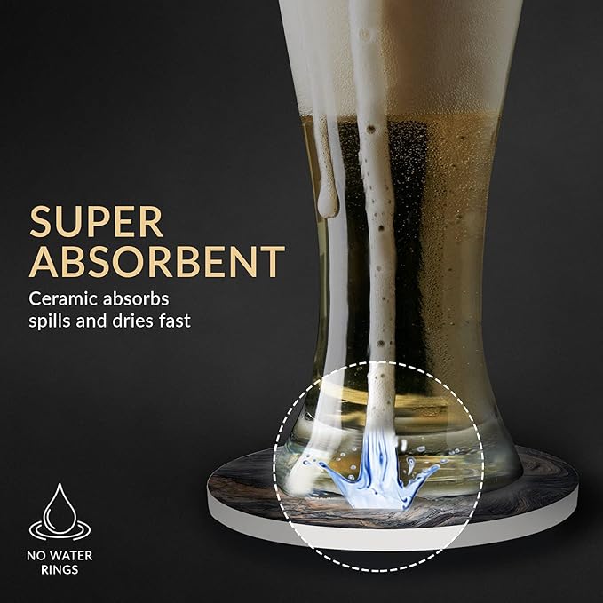 Emerson Coasters for Drinks Absorbent – Natural Stone Drink Coasters Set with Holder, Coasters for Coffee Table, Wooden Tabletop Protection Marble Style – 100% Heavy Duty Set of 6 (Magma)