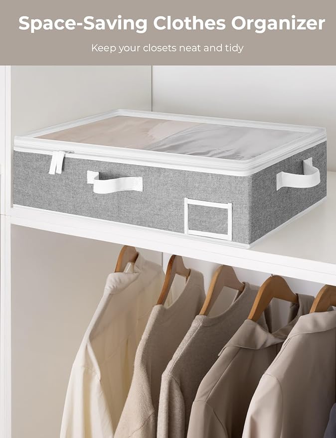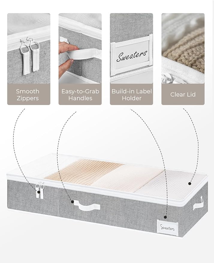 - Underbed storage container hides away out-of-season clothes, shoes, blankets, sweaters, accessories, toys, DVDs, holiday decorations, memorabilia, etc.; Suitable to use in closets, coatroom, bedroom, baby nursery, attic, basement, or under cribs at home or in a dorm.