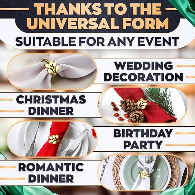 - Versatility of Gold Napkin Rings: Our autumn napkin rings are versatile & can be used as wedding dinner table decor, anniversary cloth napkin rings & birthday napkins rings. Durable and timeless design – crafted with a sophisticated gold leaf finish, this set of 20 napkin rings is great Table Decor & Napkin Accessorie