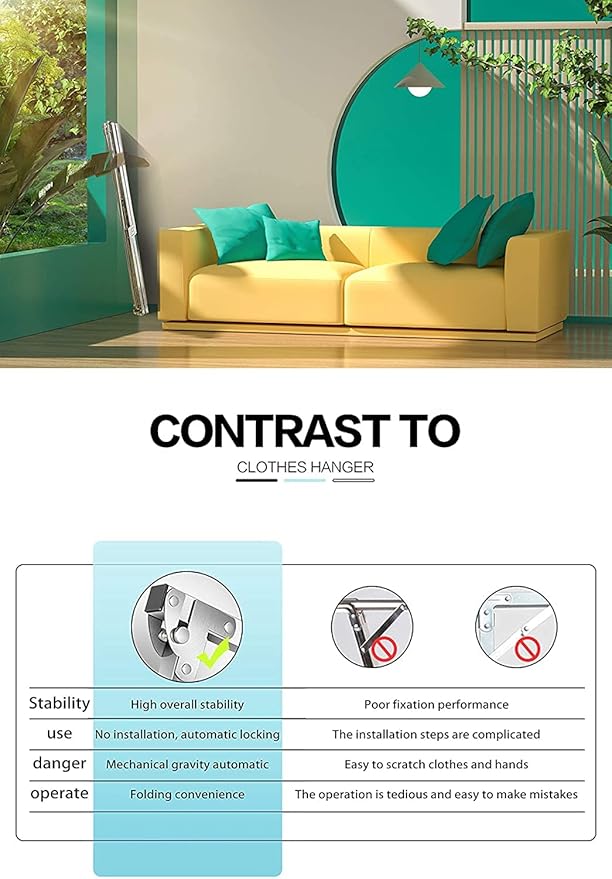 - [ NO NEED TO INSTALL] No complicated installation tutorial is required, just 2 steps, take out the cloth drying rack, and pull the clothes drying rack as shown in the manual to put it into use. (20 windproof hooks are free provided, which can be put on the drying rack clothing for use).