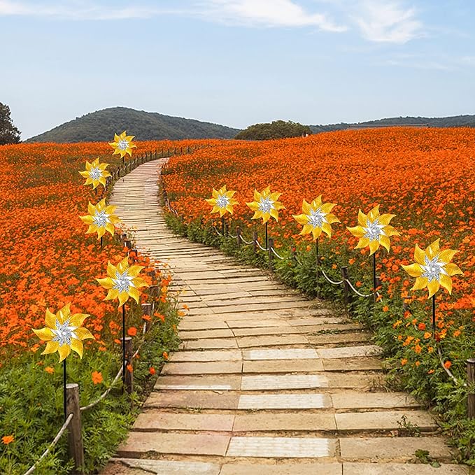 - Garden Decoration: Garden spinner pinwheel is 18.5 inches tall that enough to attract the attention of birds from a distance. They are so beautiful as they spin in the wind and reflect sunlight. These spinners work like any other holographic scare tape or scare rods, but they are also an elegant addition to your garden