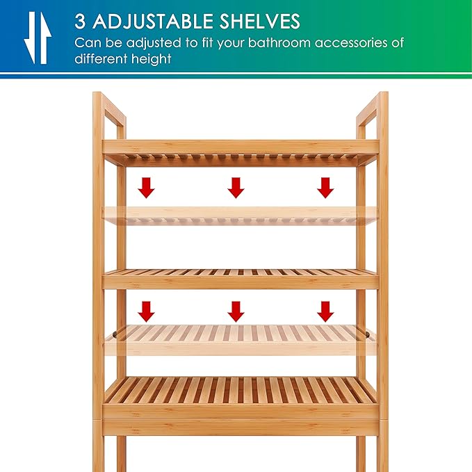 - EASY TO ASSEMBLY & STURDY: With included illustration and tools, only follow the instructions and tighten the screws will set it up; All solid bamboo parts are fastened by galvanized screws, making this toilet rack super stable and wobble-free. In addition, included tip-over restraints kit can make your bathroom accessories and rack safer