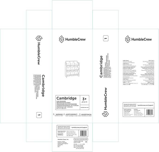 - Removable Bins: Includes 9 BPA and phthalate-free plastic bins (12"L x 9"W x 6"H) that are easy to remove, replace, and reposition for effortless organization.