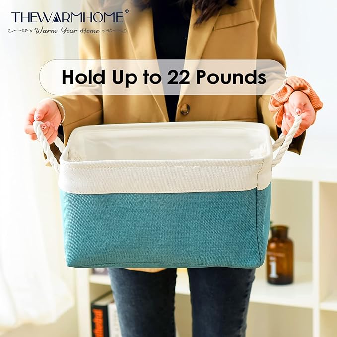 - HANDMADE STICHED & STURDY - TheWarmHome fabric storage bins outside fabric is made of more linen & thicken Environmental EVA, and used a lining material for the inside, Semi handmade stitched. Sturdy metal rod frame around the top keep the basket shape. Strong seams and rope side handles, make this storage baskets are sturdy and easy to grab. Stand up great on their own even unfilled and ensure a greater product lifespan.