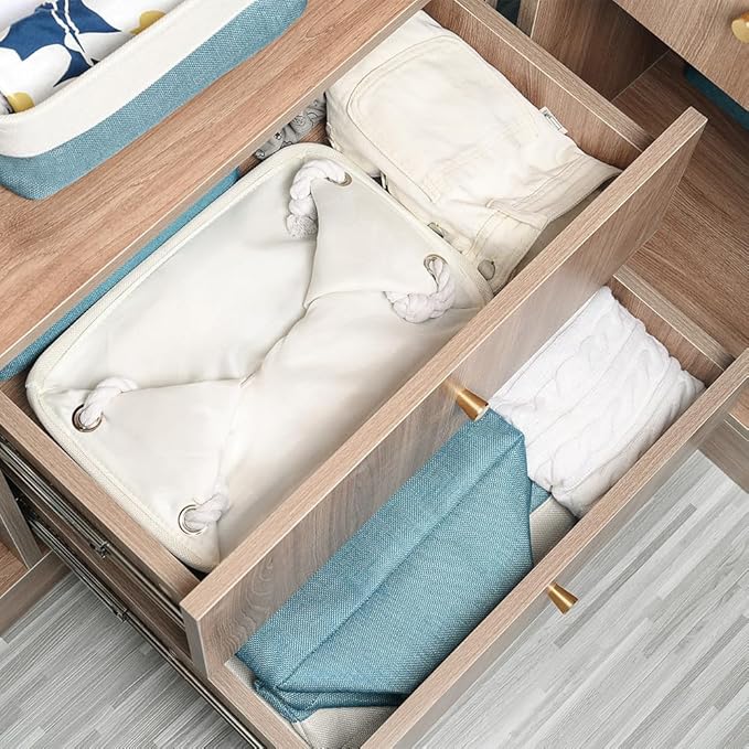 - 【ARTISTIC】: TheWarmHome Fabric Bins had great storage capacity and stylish. Minimalist design and neutral color exterior fabric can be integrated into any home decorations and styles. White cotton rope handles on the sides add a nature touch. The storage basket is like an art, not only provide a solution to many storage needs make home keep clean and tidy, doubles as a charming decoration. TheWarmHome, WARM YOUR HOME.