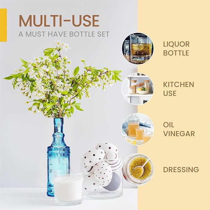 Assorted Blue Glass Bottles with Corks, 6 Pack, 2.5in X 9in, 16oz