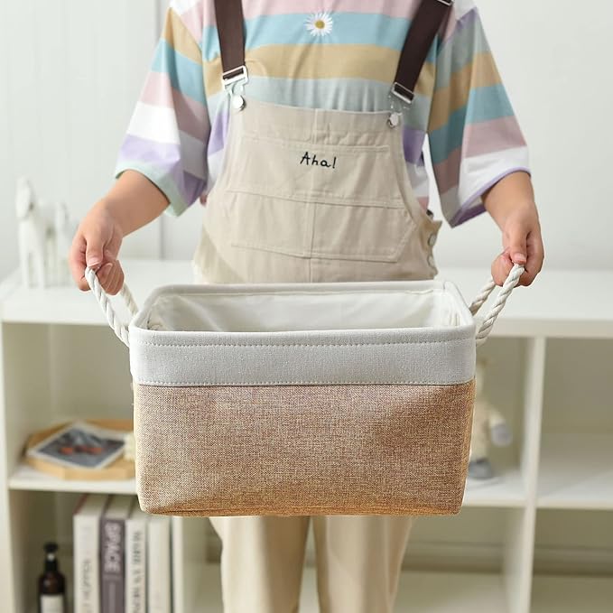- High quality: The outer material of the storage box is made of imitation linen, with thickened EVA in the middle, refusing to sag, high quality can keep the storage box firm and stylish. The lining is thin cotton, easy to clean, just wipe with a wet sponge or cloth. The handle material is made of cotton and linen handle, wide and not strangled hands.
