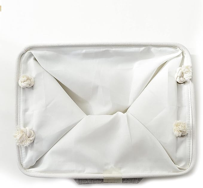 - High quality: The outer material of the storage box is made of imitation linen, with thickened EVA in the middle, refusing to sag, high quality can keep the storage box firm and stylish. The lining is thin cotton, easy to clean, just wipe with a wet sponge or cloth. The handle material is made of cotton and linen handle, wide and not strangled hands.